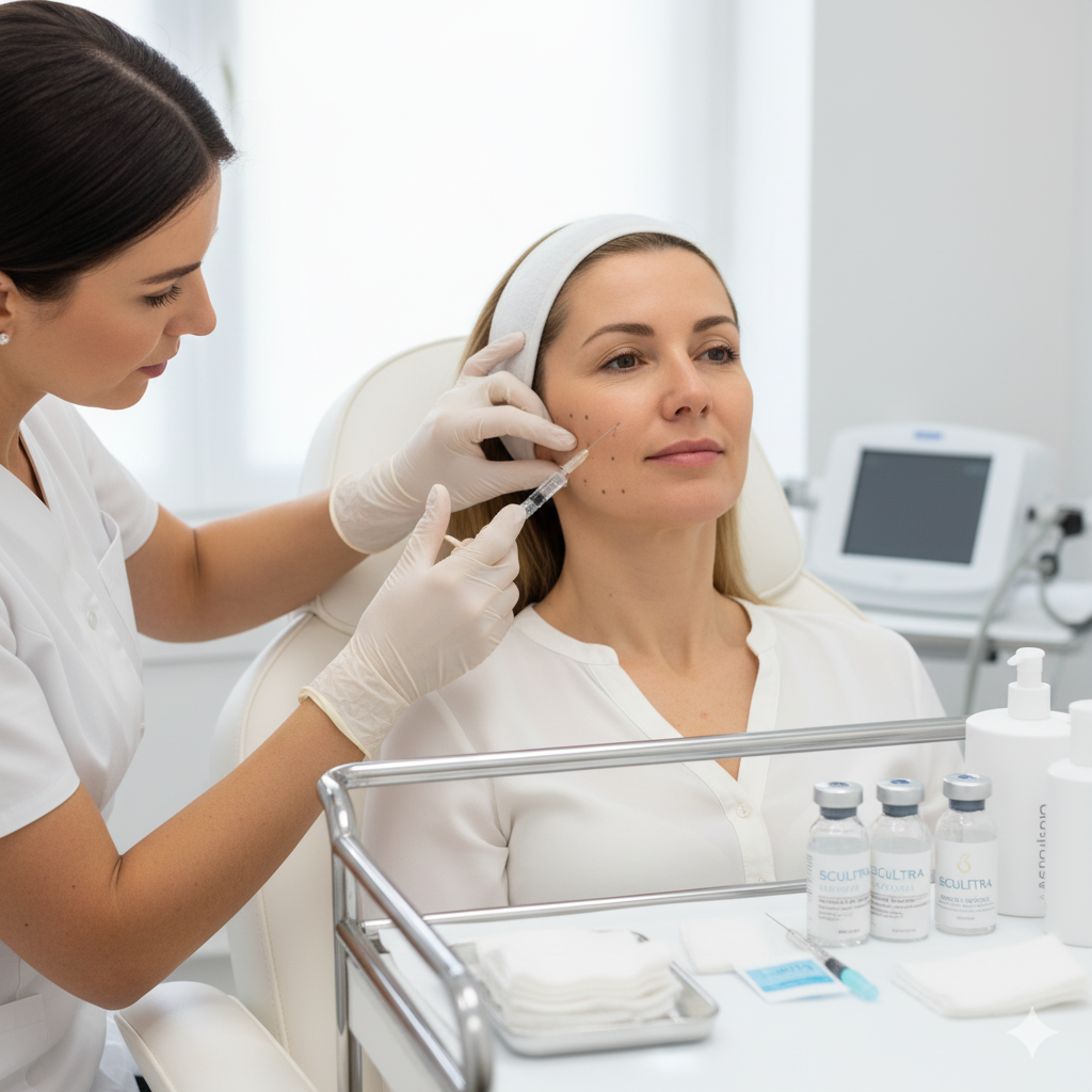 Sculptra injections are typically performed in a comfortable medical spa environment. The process involves: